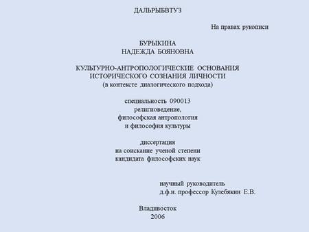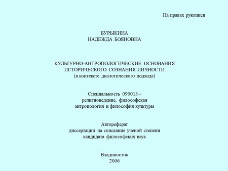 Культурно-антропологические основания исторического сознания личности (в контексте диалогического подхода) Автореферат диссертации 200,00 руб. 250,00 руб.